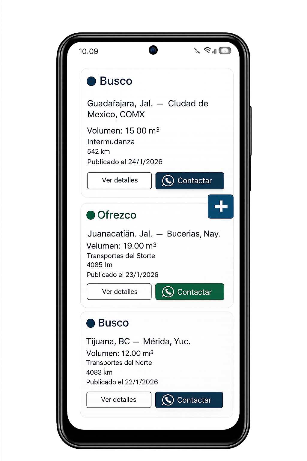Indica si buscas o ofreces carga, ruta y volumen aproximado.
